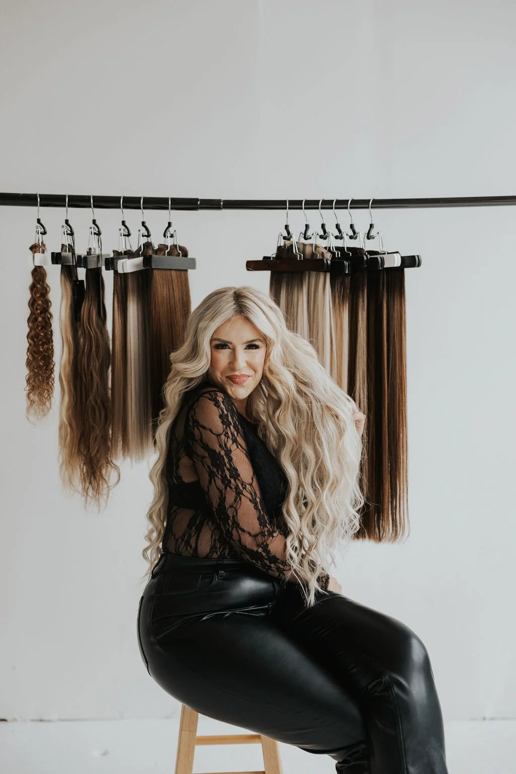 As one of the first stylists in Western New York certified in Hand-Tied Extensions, Jessie helped pioneer the method locally and has trained with elite names such as Habit Hand Tied, Invisible Bead Extensions™, Bellami Pro, and the Free-Spirited Mane Method. Her eye for custom blends and seamless transformations has made her a go-to artist for extension clients seeking a luxury experience with real results.